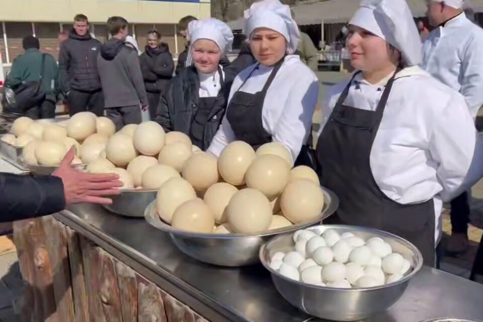 До борщу організатори запропонували три види яєць – страусині, курячі та перепелині. За словами міського голови, страва ще в процесі приготування, однак офіційний сертифікат про встановлення рекорду вже отримано. Під час прямої трансляції Василь Гуляєв продемонстрував відповідний документ.