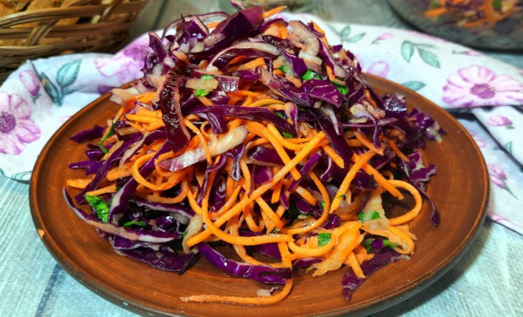 Яскравий, хрусткий і напрочуд смачний — вітамінний салат із синьої капусти стане чудовим доповненням до будь-якої страви або ж легкою самостійною закускою. Поєднання соковитого яблука, пікантної цибулі та ароматної заправки створює справжню симфонію смаку.