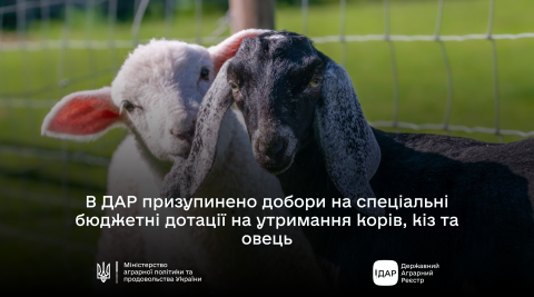 У зв’язку з вичерпанням доступного обсягу фінансування, у Державному аграрному реєстрі тимчасово зупинено прийом заявок на спеціальні бюджетні дотації за утримання корів, а також маточного поголів’я кіз та/або овець.