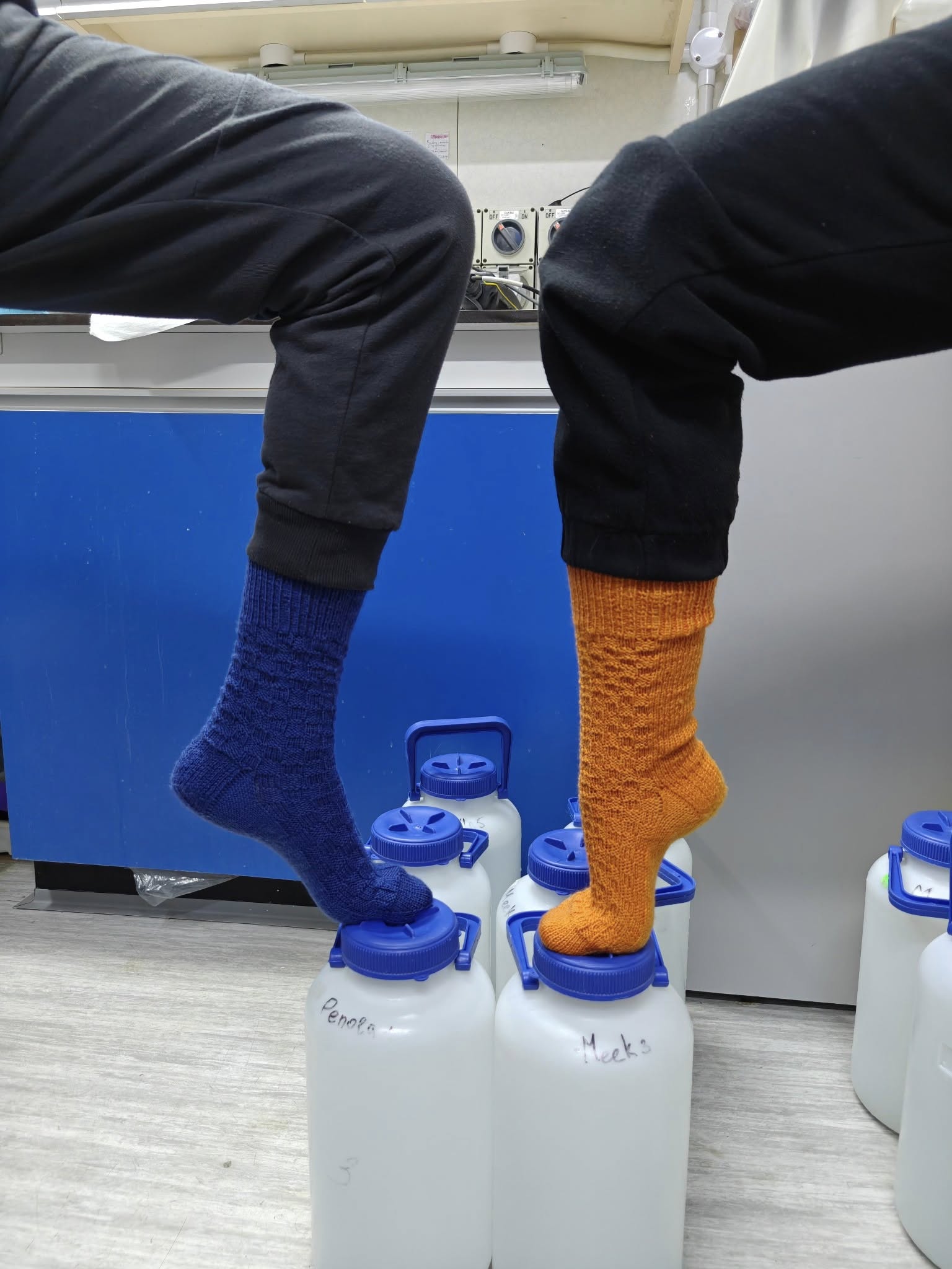 «Мої шкарпетки гріють взимку хлопців на нулі, подорожують світом разом з друзями, а тепер з’явилась можливість доторкнутись до наукового світу. Це таке щастя – бути частиною (хоч й вельми опосередковано) великої справи, трохи зігрівати тих, хто досліджує дива нашої планети задля її збереження!».