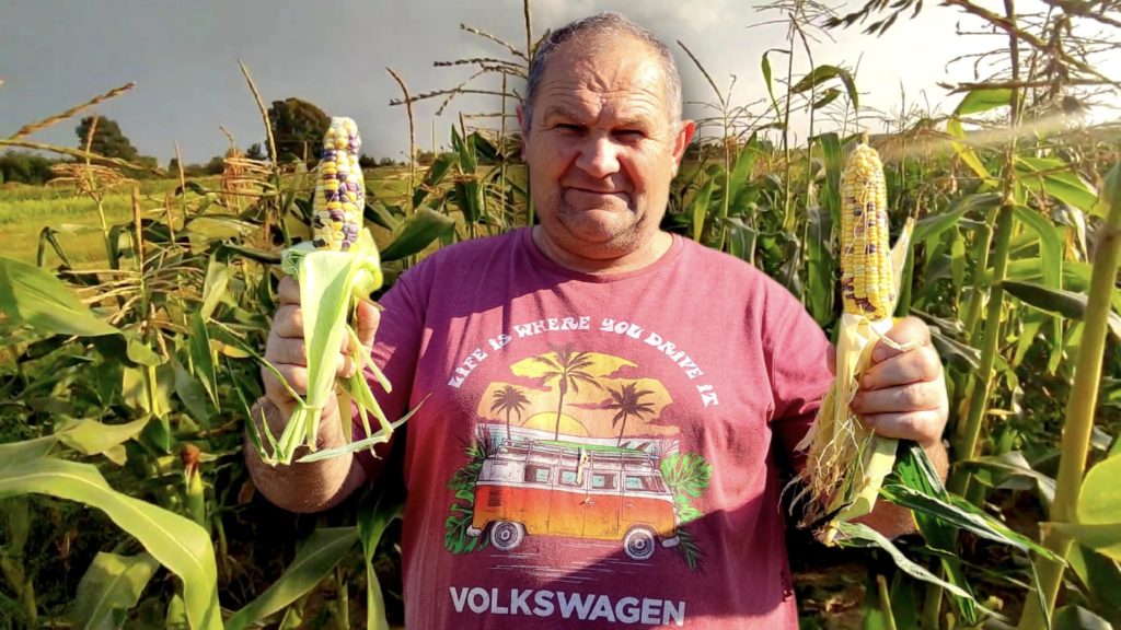 Агроном і блогер Ярик Мазур, який переїхав з Херсонщини на Львівщину, цього сезону виростив незвичайну цукрову кукурудзу – жовто-синю. Гібрид має назву «Український Біколор F1» і був створений українською компанією «Мнагор» спеціально для споживчого ринку.
