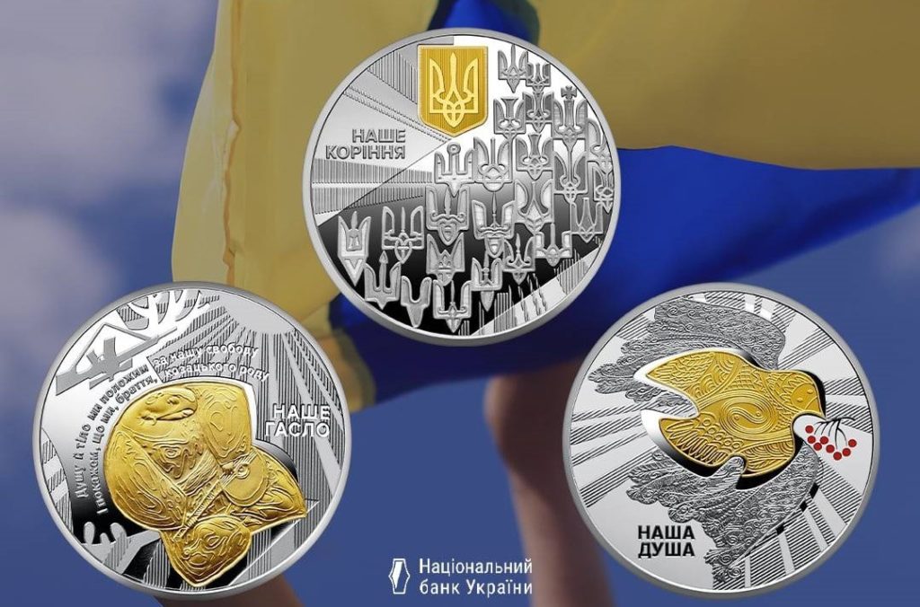 25 серпня Національний банк України презентував три пам’ятні монети «Державні символи України» номіналом 10 гривень кожна: «Наш Герб», «Наш Стяг» і «Наш Гімн». Це продовження серії «Українська держава», започаткованої 2022 року.